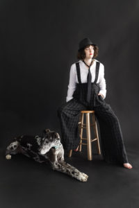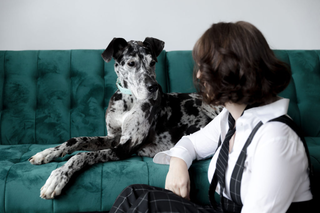 Moody and serious – it’s monochrome time! Laura shared an image on her instagram stories a few months ago that really stuck with me. Just a simple, striking portrait…and we wanted to try to recreate it. While the inspiration for these images is black and white, I wanted to create the same feel in color. Laura even had the perfect model – her pup Audrey. Audrey really was the most well behaved pup and she’s just a gorgeous dog. So grateful to have them spend some time in the studio, even though Audrey could not figure out her footing on our smooth floors. The paper backdrop was even more slippery, so we pulled in a rug to give her a little traction.